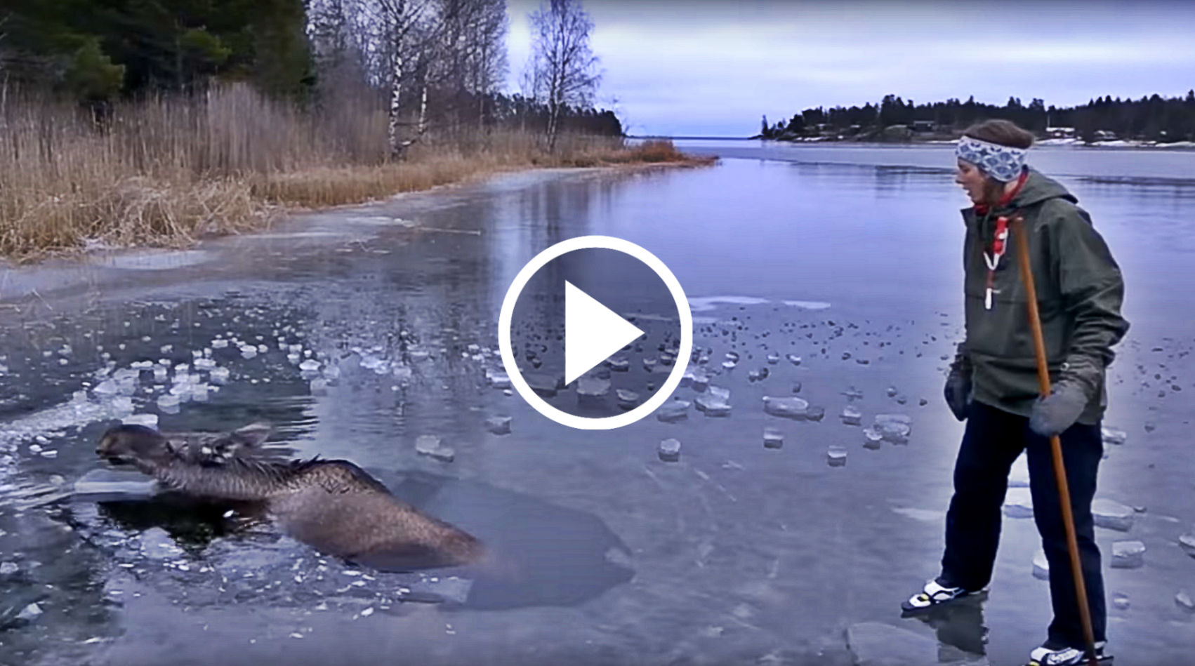 Moose Falls Through Ice And Drowns, But Watch What This Smart Brave Woman Does To Rescue It…